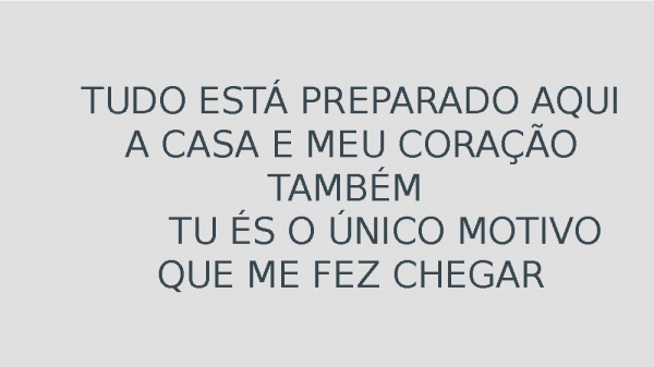 - TUDO ESTÁ PREPARADO AQUIA CASA E MEU CORAÇÃO TAMBÉM TU ÉS O ÚNICO MOTIVO QUE ME FEZ CHEGAR