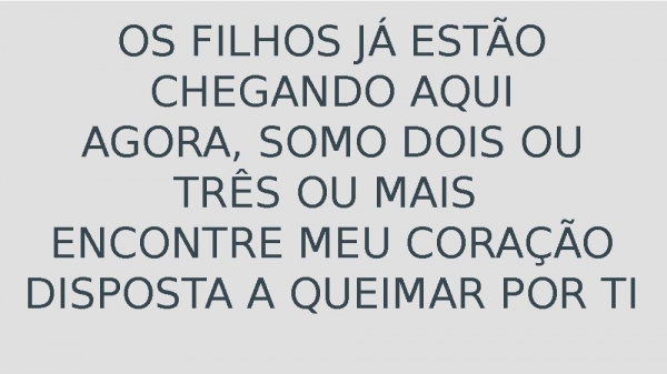 - OS FILHOS JÁ ESTÃO CHEGANDO AQUIAGORA, SOMO DOIS OU TRÊS OU MAIS ENCONTRE MEU CORAÇÃO DISPOSTA A QUEIMAR POR TI