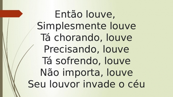 - Então louve, Simplesmente louveTá chorando, louvePrecisando, louveTá sofrendo, louveNão importa, louveSeu louvor invade o céu