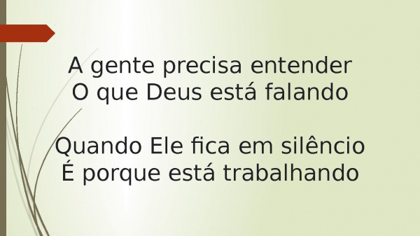 - A gente precisa entenderO que Deus está falandoQuando Ele fica em silêncioÉ porque está trabalhando