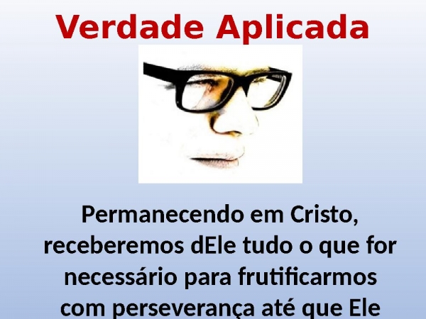 - Verdade AplicadaPermanecendo em Cristo, receberemos dEle tudo o que for necessário para frutificarmos com perseverança até que Ele venha.