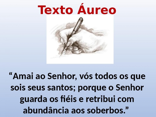 - Texto Áureo“Amai ao Senhor, vós todos os que sois seus santos; porque o Senhor guarda os fiéis e retribui com abundância aos soberbos.” (Salmo 31.23)