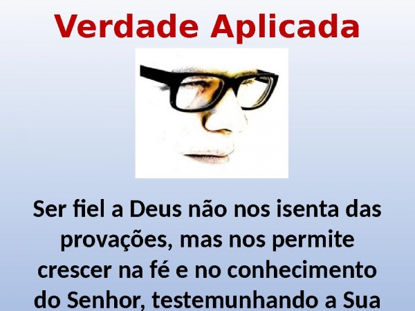 - Verdade AplicadaSer fiel a Deus não nos isenta das provações, mas nos permite crescer na fé e no conhecimento do Senhor, testemunhando a Sua provisão.