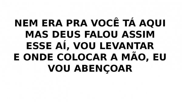 - NEM ERA PRA VOCÊ TÁ AQUIMAS DEUS FALOU ASSIMESSE AÍ, VOU LEVANTARE ONDE COLOCAR A MÃO, EU VOU ABENÇOAR