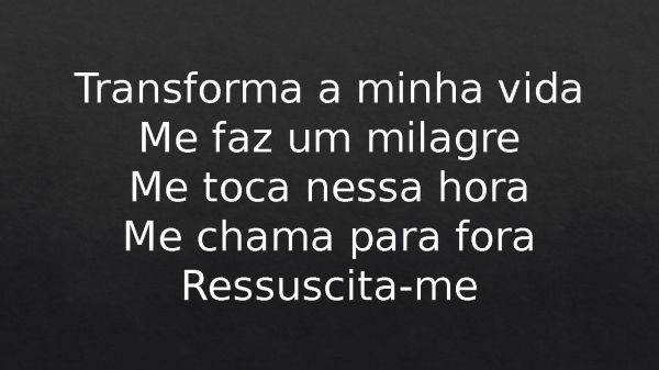 - Transforma a minha vidaMe faz um milagreMe toca nessa horaMe chama para foraRessuscita-me