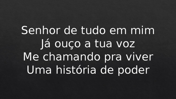 - Senhor de tudo em mimJá ouço a tua vozMe chamando pra viverUma história de poder