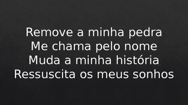 - Remove a minha pedraMe chama pelo nomeMuda a minha históriaRessuscita os meus sonhos