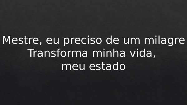 - Mestre, eu preciso de um milagreTransforma minha vida, meu estado