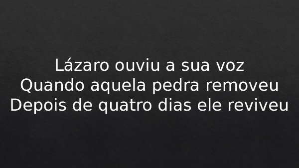 - Lázaro ouviu a sua vozQuando aquela pedra removeuDepois de quatro dias ele reviveu
