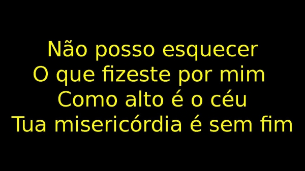 - Não posso esquecerO que fizeste por mim Como alto é o céuTua misericórdia é sem fim