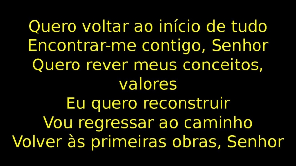 - Quero voltar ao início de tudoEncontrar-me contigo, SenhorQuero rever meus conceitos, valoresEu quero reconstruirVou regressar ao caminhoVolver às primeiras obras, Senhor