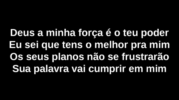 - Deus a minha força é o teu poderEu sei que tens o melhor pra mimOs seus planos não se frustrarãoSua palavra vai cumprir em mim