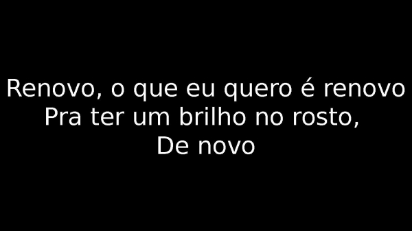 - Renovo, o que eu quero é renovoPra ter um brilho no rosto, De novo