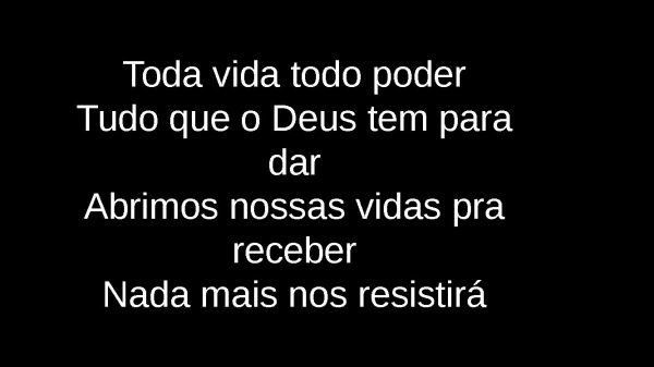 - Toda vida todo poderTudo que o Deus tem para darAbrimos nossas vidas pra receberNada mais nos resistirá