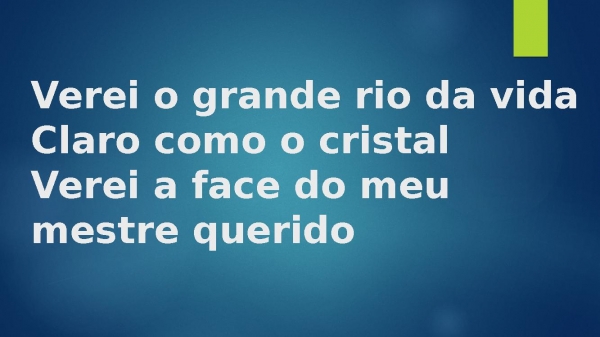 - Verei o grande rio da vidaClaro como o cristalVerei a face do meu mestre querido