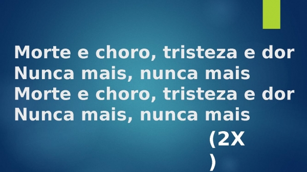 - Morte e choro, tristeza e dorNunca mais, nunca maisMorte e choro, tristeza e dorNunca mais, nunca mais(2X)