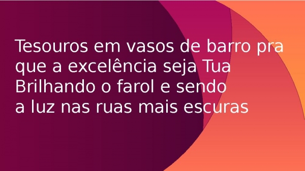 - Tesouros em vasos de barro pra que a excelência seja TuaBrilhando o farol e sendo a luz nas ruas mais escuras