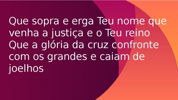 - Que sopra e erga Teu nome que venha a justiça e o Teu reinoQue a glória da cruz confronte com os grandes e caiam de joelhos