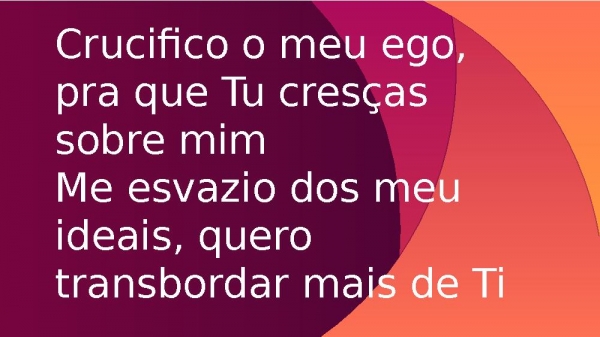 - Crucifico o meu ego, pra que Tu cresças sobre mimMe esvazio dos meu ideais, quero transbordar mais de Ti