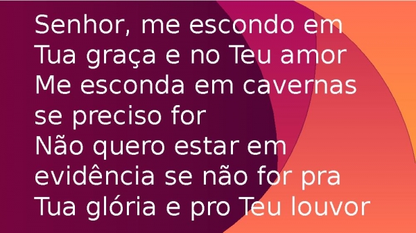 - Senhor, me escondo em Tua graça e no Teu amorMe esconda em cavernas se preciso forNão quero estar em evidência se não for pra Tua glória e pro Teu louvor