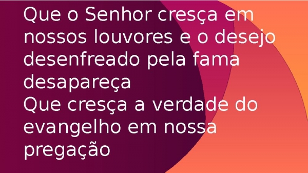 - Que o Senhor cresça em nossos louvores e o desejo desenfreado pela fama desapareçaQue cresça a verdade do evangelho em nossa pregação