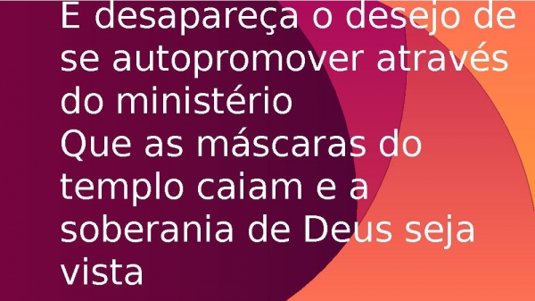 - E desapareça o desejo de se autopromover através do ministérioQue as máscaras do templo caiam e a soberania de Deus seja vista