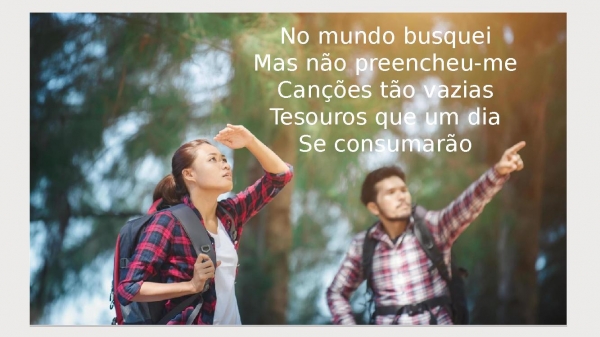- No mundo busqueiMas não preencheu-meCanções tão vaziasTesouros que um diaSe consumarão
