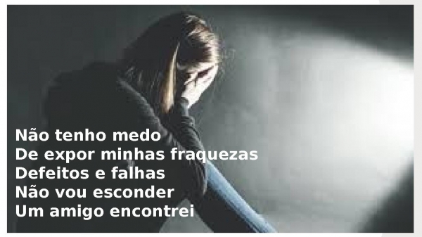 - Não tenho medoDe expor minhas fraquezasDefeitos e falhasNão vou esconderUm amigo encontrei