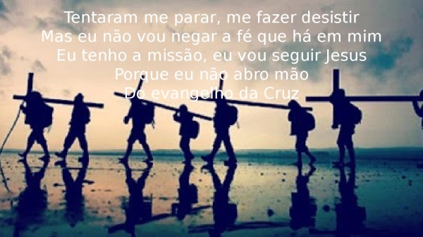 - Tentaram me parar, me fazer desistirMas eu não vou negar a fé que há em mimEu tenho a missão, eu vou seguir JesusPorque eu não abro mãoDo evangelho da Cruz