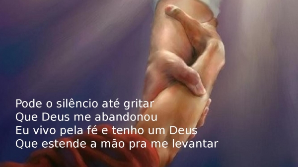 - Pode o silêncio até gritarQue Deus me abandonouEu vivo pela fé e tenho um DeusQue estende a mão pra me levantar
