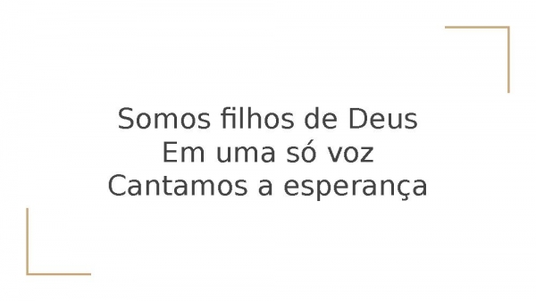 - Somos filhos de DeusEm uma só vozCantamos a esperança