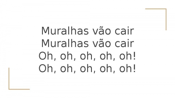 - Muralhas vão cairMuralhas vão cairOh, oh, oh, oh, oh!Oh, oh, oh, oh, oh!