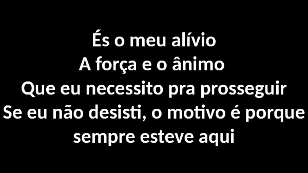 - És o meu alívioA força e o ânimo Que eu necessito pra prosseguirSe eu não desisti, o motivo é porque sempre esteve aqui