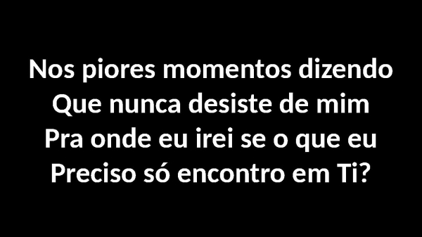 - Nos piores momentos dizendo Que nunca desiste de mimPra onde eu irei se o que eu Preciso só encontro em Ti?