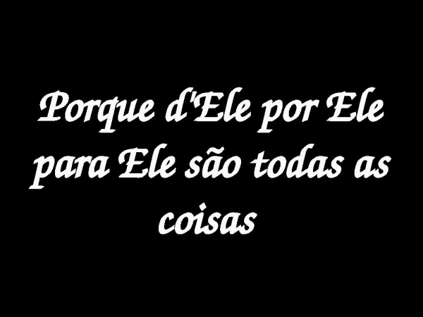 - Porque d'Ele por Ele para Ele são todas as coisas
