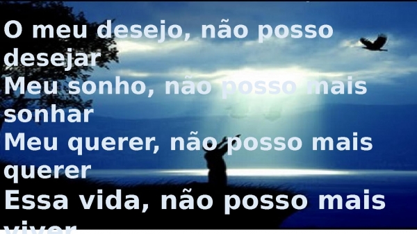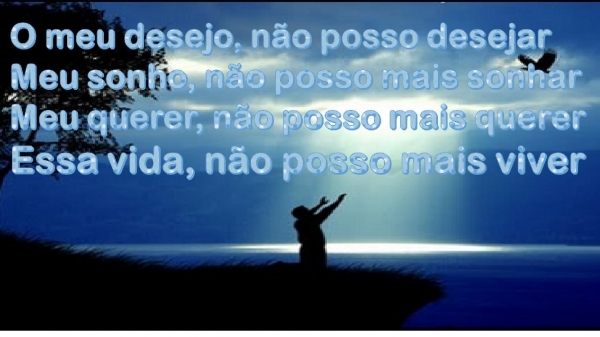 - O meu desejo, não posso desejarMeu sonho, não posso mais sonharMeu querer, não posso mais quererEssa vida, não posso mais viver