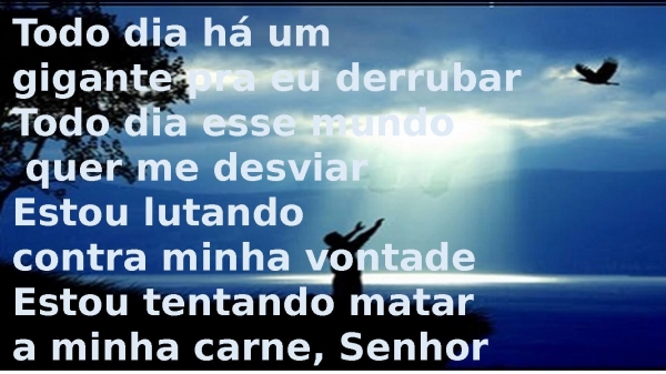 - Todo dia há um gigante pra eu derrubarTodo dia esse mundo quer me desviarEstou lutando contra minha vontadeEstou tentando matar a minha carne, Senhor