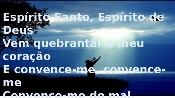 - Espírito Santo, Espírito de DeusVem quebrantar o meu coraçãoE convence-me, convence-meConvence-me do mal.