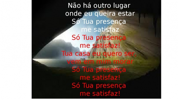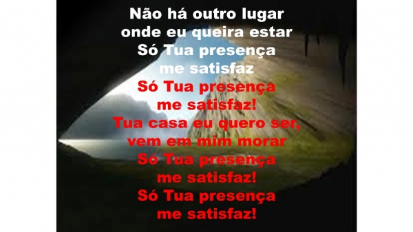 - Não há outro lugar onde eu queira estarSó Tua presença me satisfazSó Tua presença me satisfaz!Tua casa eu quero ser, vem em mim morarSó Tua presença me satisfaz!Só Tua presença me satisfaz!