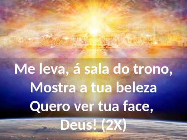 - Me leva, á sala do trono,Mostra a tua belezaQuero ver tua face, Deus! (2X)