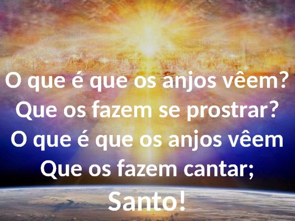 - A Ele a Glória, A Ele a Glória, A Ele a GlóriaPara sempre, Amém (3X)O que é que os anjos vêem?Que os fazem se prostrar?O que é que os anjos vêemQue os fazem cantar;Santo!