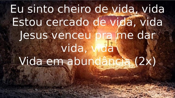 - Eu sinto cheiro de vida, vidaEstou cercado de vida, vidaJesus venceu pra me dar vida, vidaVida em abundância (2x)