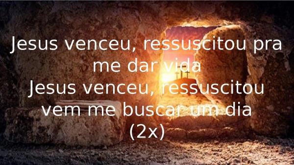 - Jesus venceu, ressuscitou pra me dar vidaJesus venceu, ressuscitou vem me buscar um dia(2x)