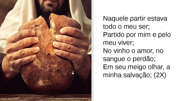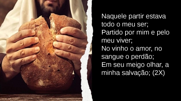 - Naquele partir estava todo o meu ser;Partido por mim e pelo meu viver;No vinho o amor, no sangue o perdão;Em seu meigo olhar, a minha salvação; (2X)