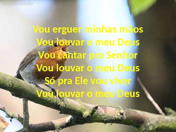 - Vou erguer minhas mãosVou louvar o meu DeusVou cantar pro SenhorVou louvar o meu DeusSó pra Ele vou viverVou louvar o meu Deus