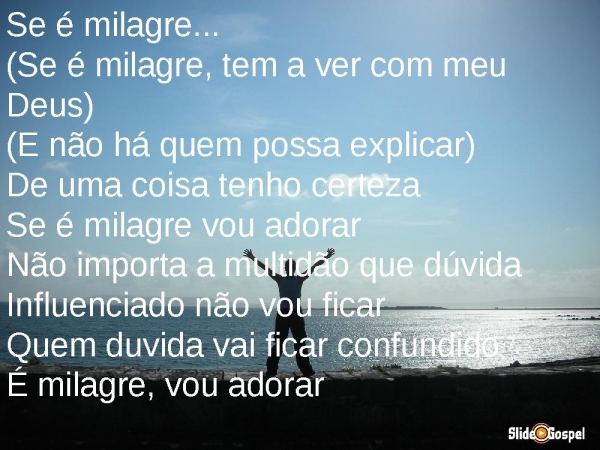 - Se é milagre...(Se é milagre, tem a ver com meu Deus)(E não há quem possa explicar)De uma coisa tenho certezaSe é milagre vou adorarNão importa a multidão que dúvidaInfluenciado não vou ficarQuem duvida vai ficar confundidoÉ milagre, vou adorar