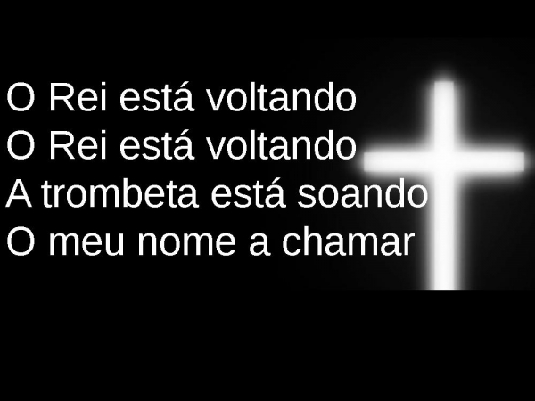 - O Rei está voltandoO Rei está voltandoA trombeta está soandoO meu nome a chamar