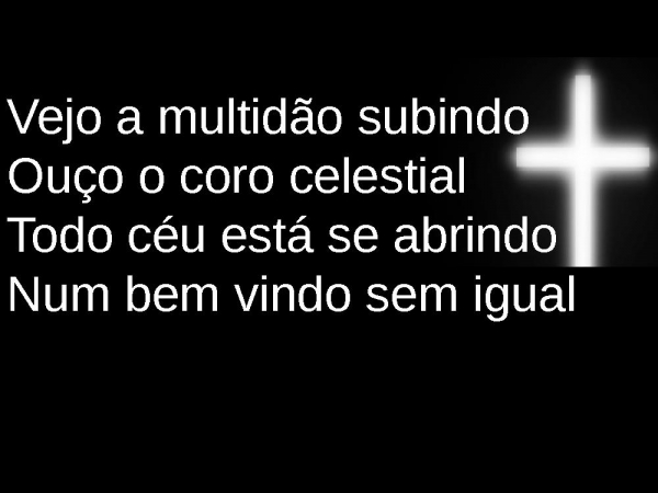 - Vejo a multidão subindoOuço o coro celestialTodo céu está se abrindoNum bem vindo sem igual