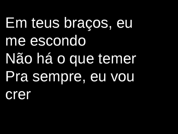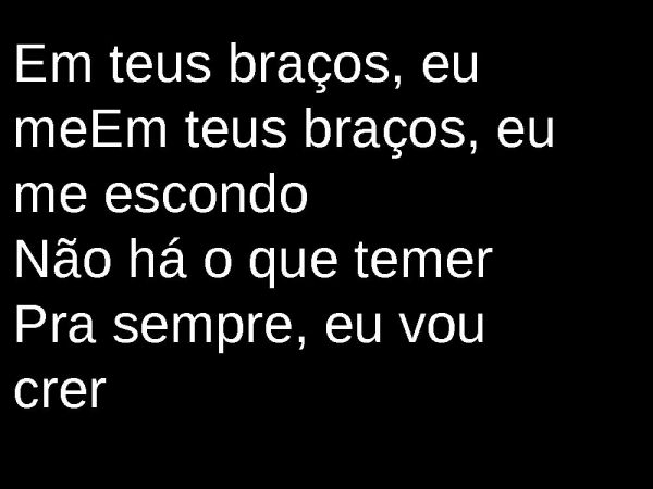 - Em teus braços, eu meEm teus braços, eu me escondoNão há o que temerPra sempre, eu vou crer