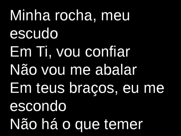 - Minha rocha, meu escudoEm Ti, vou confiarNão vou me abalarEm teus braços, eu me escondoNão há o que temer